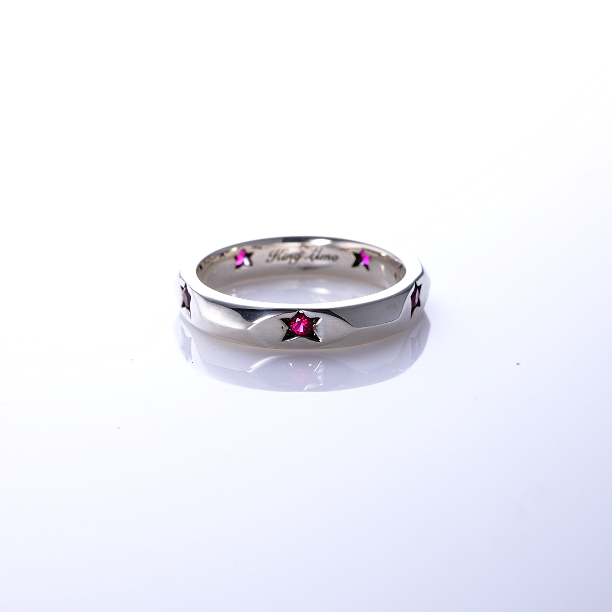 ◇ディティールラインが途切れずにファイブスターが一周回ったデザインは、シャープエッジが際立つエタニティーバンドリングになっています。
