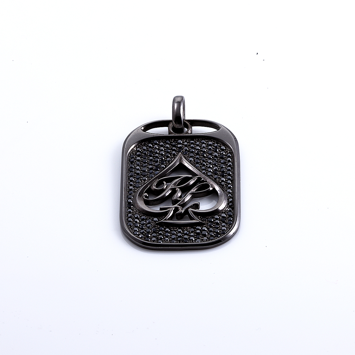 ◇190ピースのブラックキュービックジルコニアが敷き詰められた、とても目をひくドックタグペンダントです。