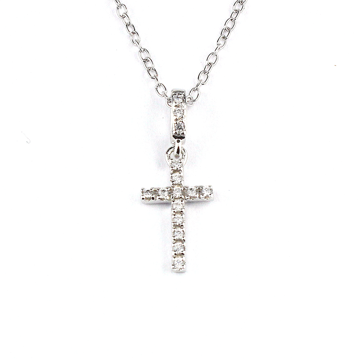 ◇キュービックジルコニアで十字架を形どった煌びやかなマイクロクロスネックレス。