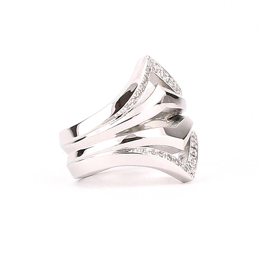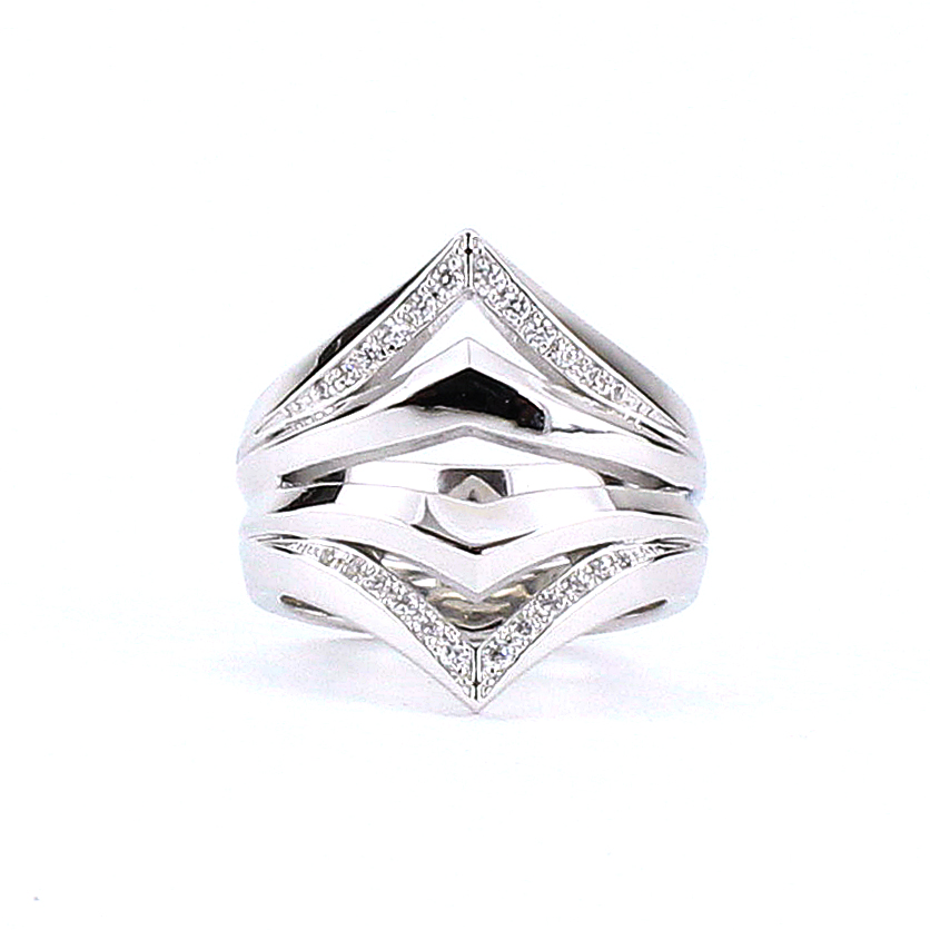 ◇キングリモが得意とする立体的なプロダクトデザイン。エッジが立つ面とシャープなフォルムを融合した造形美がラグジュアリーなリングに仕上がっています。